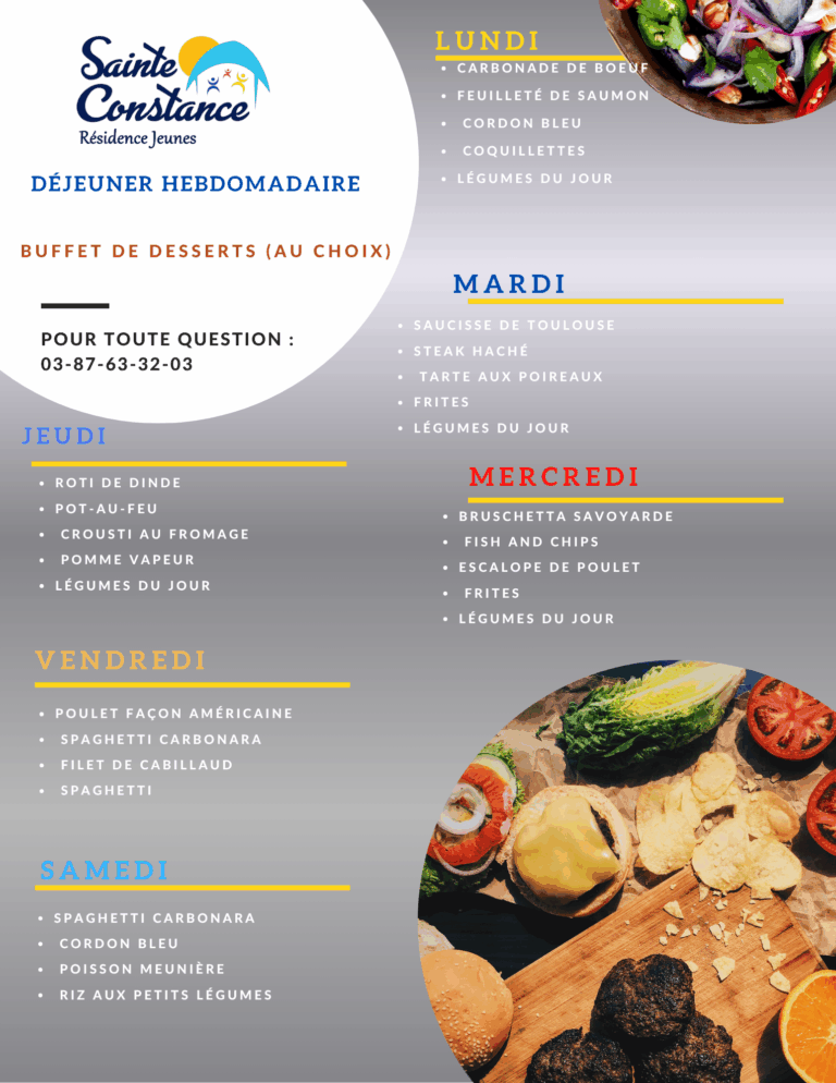 MENU DU LUNDI 20 AU SAMEDI 25 OCTOBRE 2025