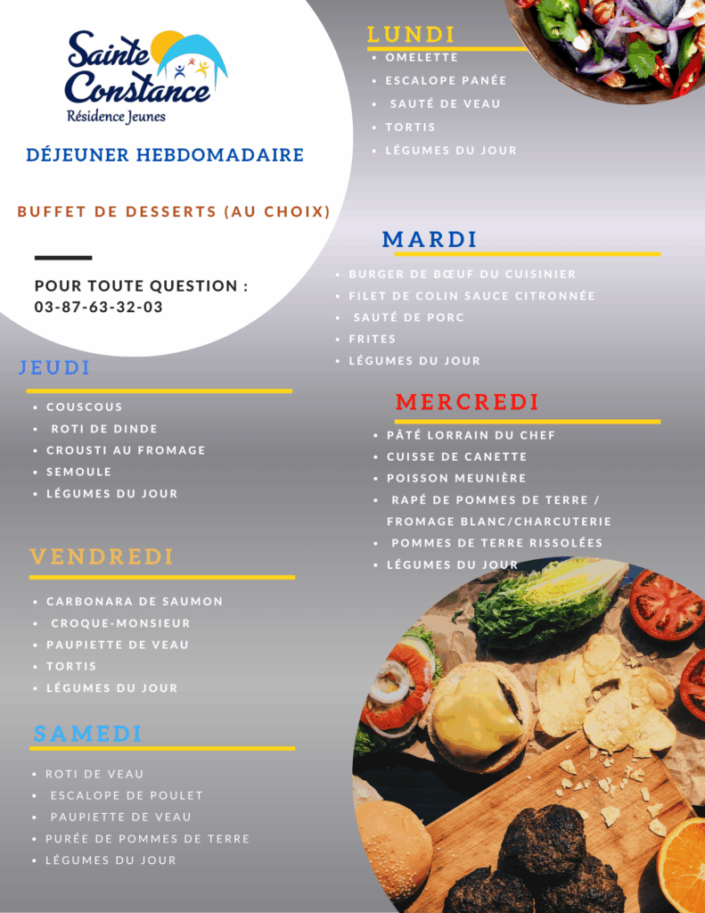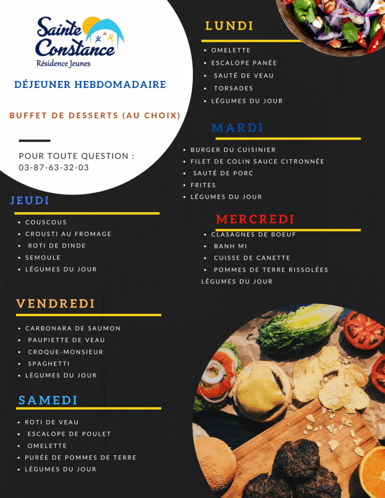MENU DU LUNDI 03 AU SAMEDI 08 NOVEMBRE 2025